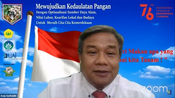Rektor Universitas Al-Azhar Indonesia (UAI), Prof. Dr. Ir. Asep Saefuddin, M.Sc. menyuarakan kedaulatan pangan dalam meraih tujuan serta cita-cita kemerdekaan. Hal ini dituangkan dalam webinar “Mewujudkan Kedaulatan Pangan” yang mengangkat topik “Dengan Optimasi Sumber Daya Alam, Nilai Luhur, Kearifan Lokal dan Budaya Untuk Meraih Cita Cita Kemerdekaan”. Webinar ini diadakan oleh BUMR Paramasera serta berkolaborasi dengan UAI, Universitas Pakuan (UNPAK), dan bertujuan untuk mengedukasi publik mengenai kedaulatan pangan.