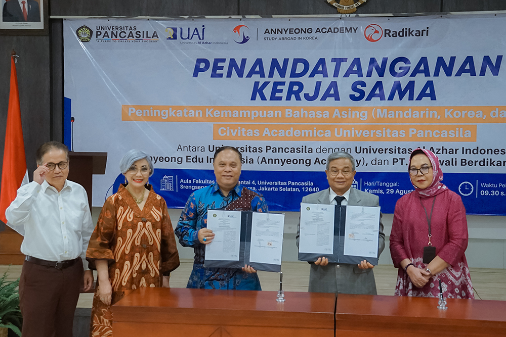 Universitas Al-Azhar Indonesia Tandatangani Kerjasama Perkuat Kemampuan Bahasa Asing Bersama Universitas Pancasila, Annyeong Edu Indonesia, dan PT Rajawali Berdikari Indonesia